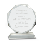 Celebrate achievement with this elegant Premier Crystal Octagon. Crafted from clear crystal, each piece is carefully handmade, making every award slightly unique. The octagon shape is perfectly balanced on a clear pedestal base, creating a refined and sophisticated display. Individually packaged in a lined gift box, it’s an ideal choice for honoring excellence, commemorating milestones, or presenting a memorable token of recognition.
