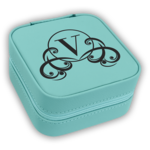 4" X 4" Teal Laserable Leatherette Travel Jewelry Box with Tan Lining