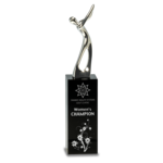 JDS CRY145M - 9 1/2" Silver Metal Golf Figure on Black Crystal Pedestal CRY145M