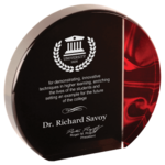 Honor outstanding achievement with the Round Red Velvet Acrylic. This Premier Acrylic award stands 1 inch thick, is self-standing, and comes individually boxed for a beautiful presentation. The deep red accents create a striking contrast against the clear acrylic, giving it a rich and elegant look. Available in multiple sizes, four styles—Round, Wave, Star, and Arch—and two colors, Blue and Red, the Velvet Acrylic series offers a versatile way to celebrate excellence.