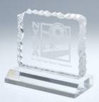 4 1/2" x 3 1/2" Clear Cracked Ice Acrylic Blank with Base