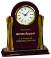 8 1/4" x 7 1/2" Rosewood Piano Finish Clock with Gold Columns